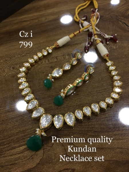 Discover the allure of minimalism with the Green and White One-Stone Kundan Necklace Set. Designed with a single kundan stone at its heart, this piece blends simplicity with timeless elegance. The refreshing green and pristine white tones create a harmonious contrast, making it versatile for both everyday wear and special occasions. Subtle yet captivating, this necklace set is perfect for those who believe less is truly more.
