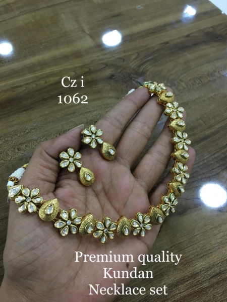 The Swadha Etasha necklace features an all-over floral motif crafted in a stunning white and gold combination. Its intricate design radiates elegance and timeless beauty. Perfect for weddings, festive occasions, or gifting, it captures admiration at every glance. The delicate floral patterns blend tradition with modern grace. A masterpiece necklace that celebrates femininity and charm.