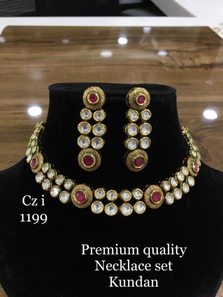 The Swadha Kaashvi necklace set is adorned with traditional red and white Kundan stones, radiating timeless ethnic beauty. Its classic color combination makes it a perfect match for a variety of traditional outfits. Ideal for weddings, festivals, and family functions, it brings elegance to every occasion. The intricate detailing reflects fine craftsmanship and cultural richness. A versatile and graceful set to enhance your ethnic jewelry collection.