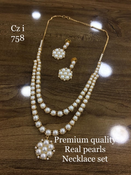 The Swadha Kashvi Pearl Necklace Set shines brilliantly, living up to its name Kashvi, meaning shining bright and luminous. Its radiant pearls add a glow of sophistication to every occasion. Designed with timeless elegance, it complements both festive and formal attire. The luminous charm makes it a versatile addition to your jewelry collection. A graceful piece that ensures you sparkle wherever you go.